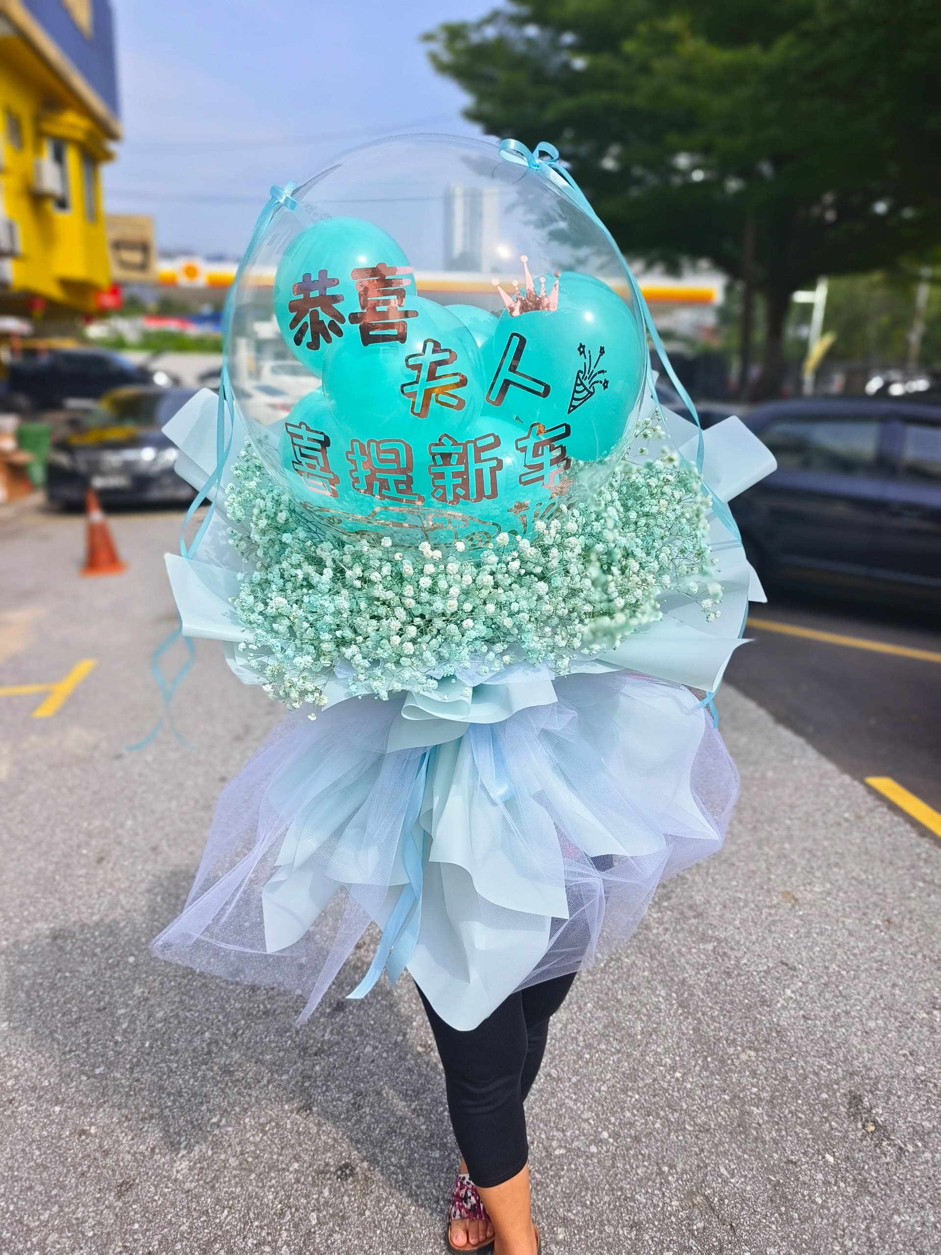 New car celebration bouquet – Baby Breath with festive balloon, Kuchai Lama