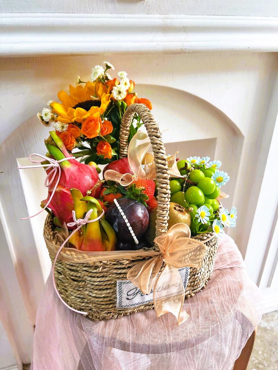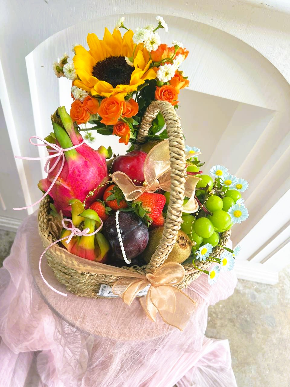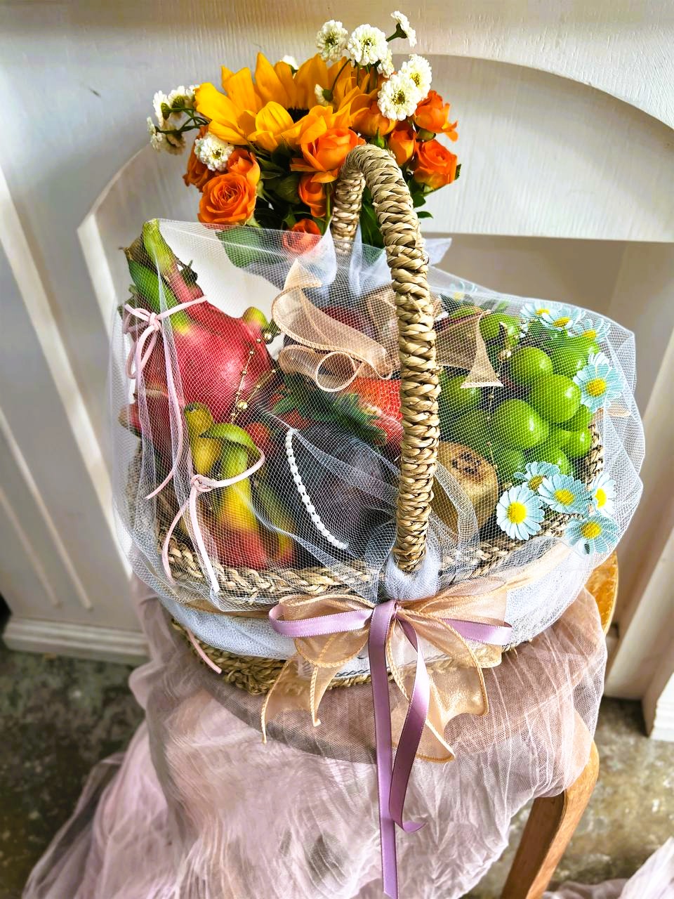 Express your care and celebrate any occasion with our versatile Fruit Basket with Fresh Flower, thoughtfully arranged by our expert florist. Perfect for hospital visits, visiting friends, corporate gifting, or shop grand openings, each basket is designed to convey good wishes, health, and prosperity to your loved ones, colleagues, or business partners.